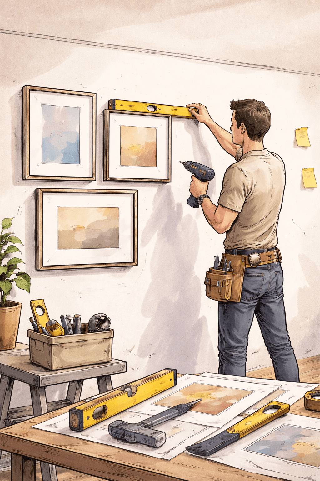 We review your space and artwork. We confirm layout, spacing, and fixing points. Nothing gets hung until it makes sense visually.